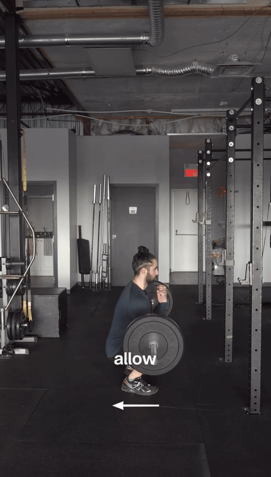 The barbell does the opposite. It sits on your back, pulls your weight forward, and if your body can't accommodate that shift, the squat stops early.
