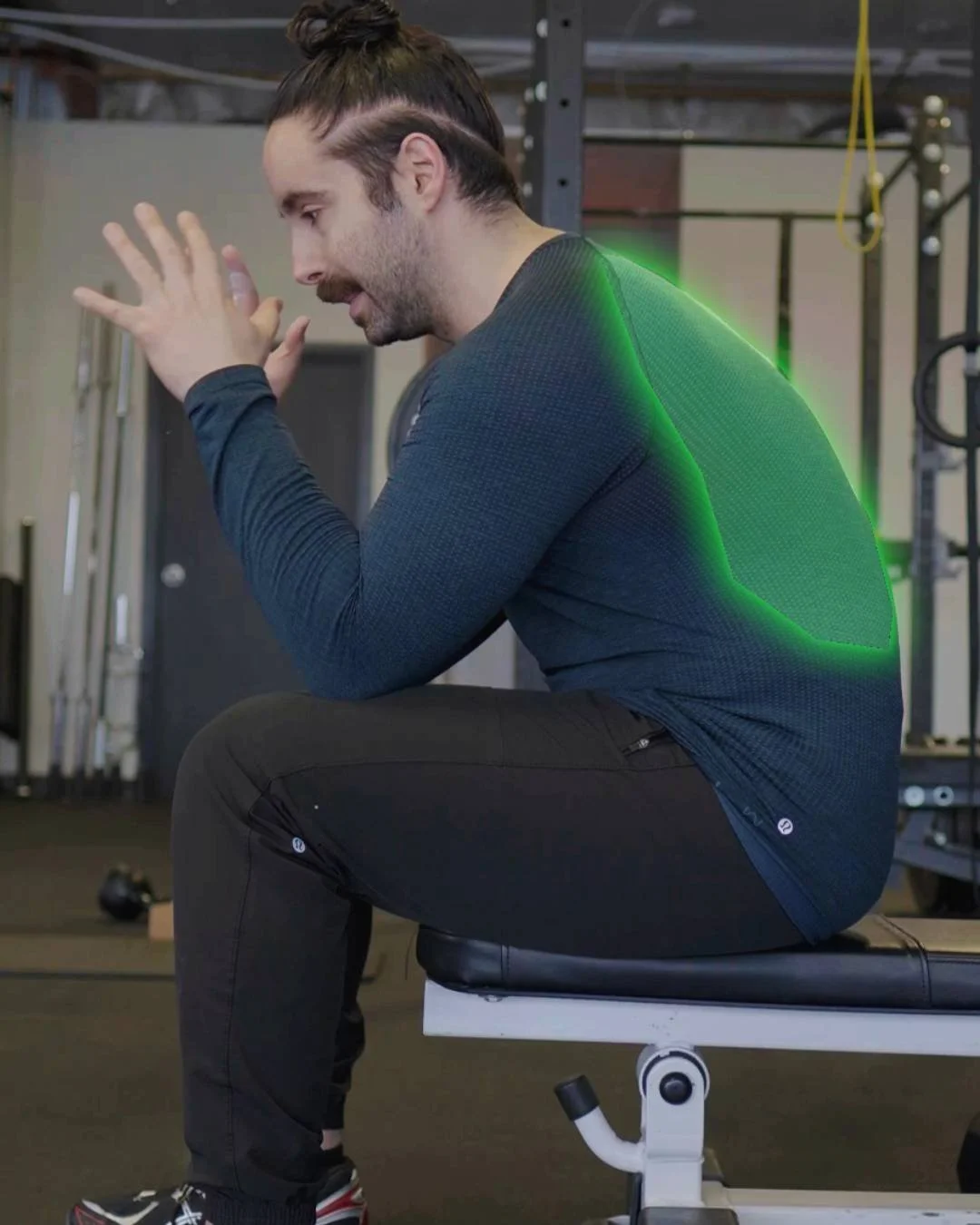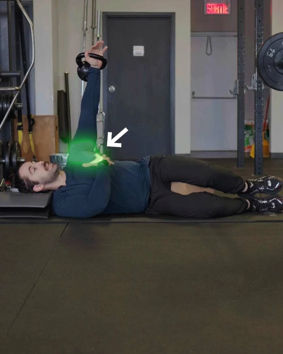 This helps open up your upper back, rib cage, and shoulder blade. You are basically creating space where things were stuck before. More space, less pinch.